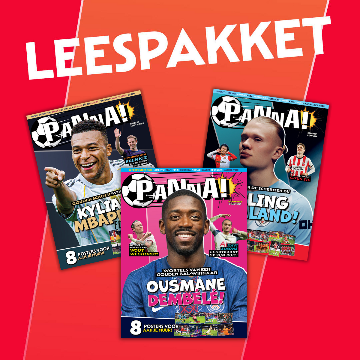 PANNA! Magazine Leespakket bevat de volgende items: Nu, speciaal voor jou: het PANNA! Magazine Leespakket. Verveel je geen moment met de drie nieuwste (reguliere) edities van het leukste voetbalmagazine van Nederland. Je hoeft er de deur niet eens voor uit, want je bestelt jouw pakket natuurlijk gewoon via onze webshop. Dat is pas chill!
